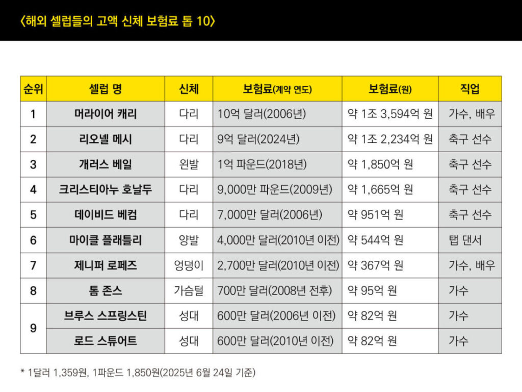 아래 도표는 영국의 최다 일간지 ‘The Sun’, 우리나라의 중앙일보, KBS 등 공신력 있는 각종 국내외 언론사들이 보도한 초고가의 키 퍼슨 보험료를 나름대로 정리한 것입니다. 다만 보험 가입 여부는 사실인 것으로 확인됐지만 보험료는 공인된 액수는 아니니 참고만 하기 바랍니다.